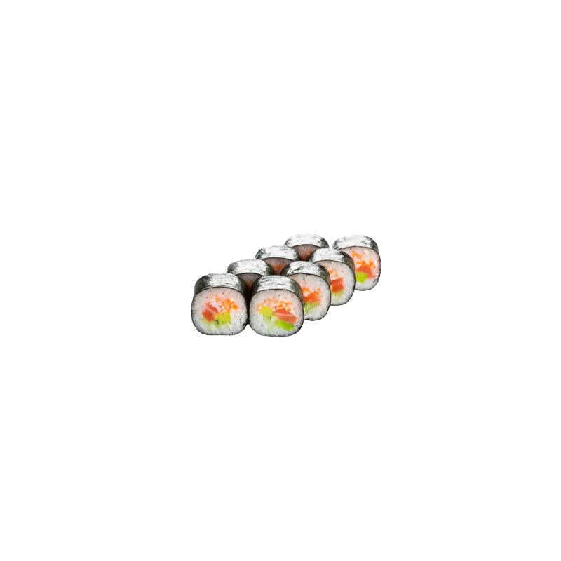 лосось, снежный краб, помидор, майонез, авокадо, омлет, рис, нори. Вес: 230 г.