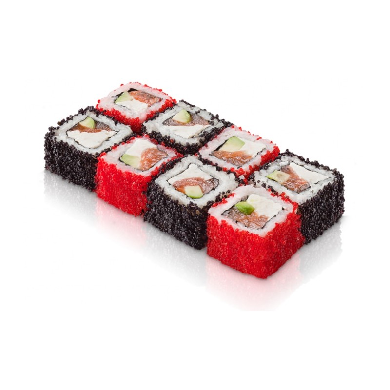 Состав: рис, нори, лосось, икра лососевая, сыр сливочный,...
