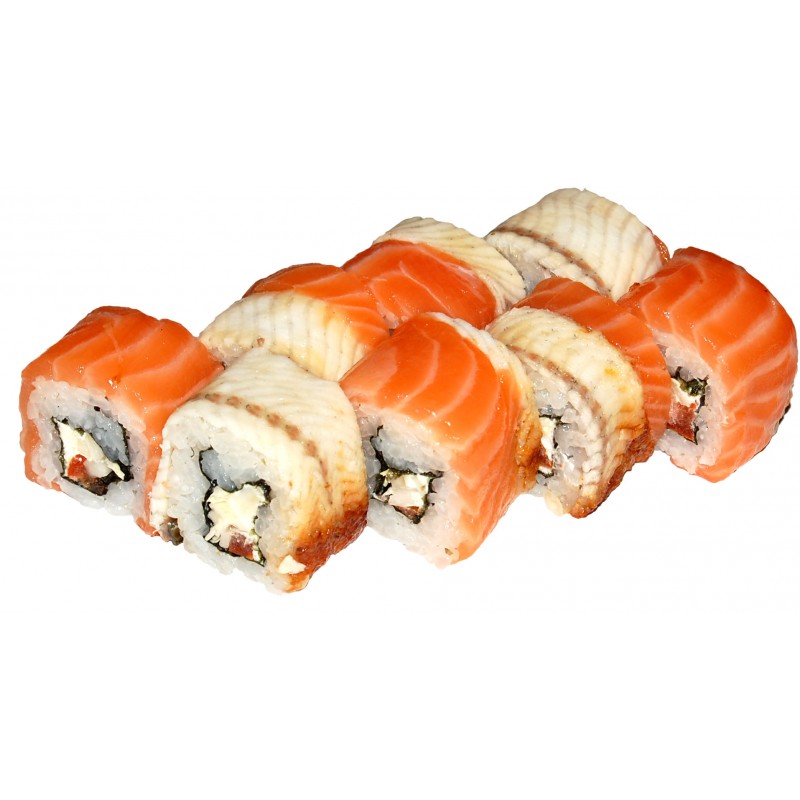 Состав: Рис, нори, угорь копченый, сыр сливочный, омлет,...